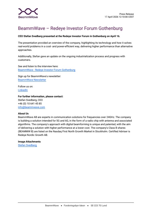 BeammWave – Redeye Investor Forum Gothenburg